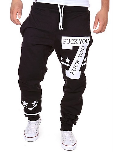 Herr Aktiv Joggingbyxor Joggare Långbyxor Mönster Bokstav Fullängd Helgen Grundläggande Lös passning Svart Vit Microelastisk