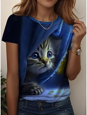 Dam T-shirt Mönster Grafisk Djur Katt Vintage Stylish Klassisk Kortärmad Rund hals Vanliga toppar Dagligen Helgen Blå Purpur Grön Sommar Vår