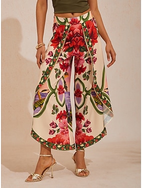 Hawaii Palm silkeslena satinbyxor med blommönster