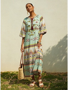 Dam Resort Wear Maxiklänning Marinblå 3/4 ärm Folk Tryck Vår & sommar V-hals Fritid Strandsemester S M L