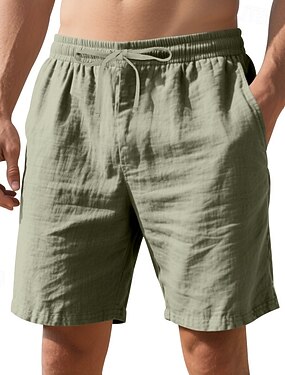Herr Shorts Linne Shorts Sommarshorts Beach Shorts Snörning Elastisk midja Framficka Slät Komfort Andningsfunktion Knelängd Utomhus Arbete Dagligen Mode Klassisk Stil ArmyGreen Svart