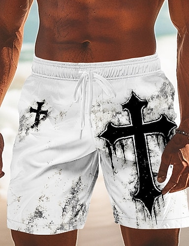 Herr Kors Religion Badshorts Boardshorts Medium Midja Retro / vintage Utomhus Semester Vardag Sidfickor Mesh foder Elastisk dragsko i midjan Designer Kläder