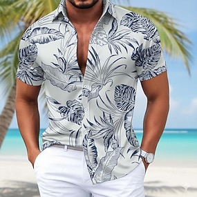 Herr Löv Tropiska växter Hawaii skjorta Knapp upp skjorta Aloha skjorta Kortärmad Hawaiisk Ledigt Semester Sommar Vår Nedvikt 3D-utskrift krage skjortor Främre en ficka Blå Rodnande Rosa Grön Kaki