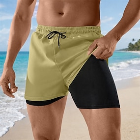 Herr Badshorts Boxershorts Shorts Snörning Elastisk midja Ensfärgat Snabb tork Andningsfunktion Över Knät Ledigt Strand Simning Semester Mode Blå 다크 카키 Microelastisk