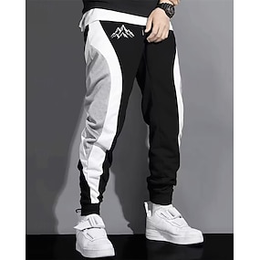 Herr Joggingbyxor Joggare Långbyxor Snörning Ficka Elastisk midja Färgblock Mönstrad Komfort Utomhussport Dagligen Mode Ledigt Svart Grå Microelastisk