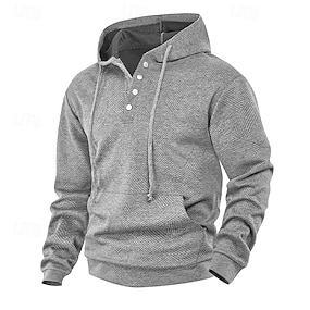 Herr Huvtröja Våffla hoodies Tröja med tröja Blå Aprikos Vinrött Svart Ljusgrön Huva Slät Känguruficka Strukturerad Sport & Utomhus Ledigt Dagligen Streetwear Häftig Sportkläder Vår & Höst Kläder Pull