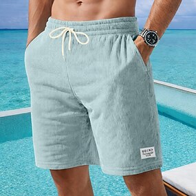 Herr Våffelstruktur Shorts Sommarshorts Beach Shorts Snörning Elastisk midja Ensfärgat Komfort Knelängd Dagligen Utomhus Streetwear Semester Mode Blå Svart Microelastisk