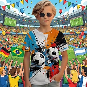 Pojkar 3D Grafisk Fotboll Fotbolls-T-shirts T-shirt Kortärmad 3D-tryck Sommar Vår Sport Mode Streetwear Barn 4-12 år Rund hals Ledigt Dagligen Utomhus Normal