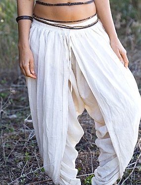 Herr Linne Byxor Långbyxor Sommarbyxor Snörning Elastisk midja Brett skaft Slät Komfort Andningsfunktion Fullängd Ledigt Dagligen Helgdag Semester Mode Lös passning Pumpa Vit Oelastisk