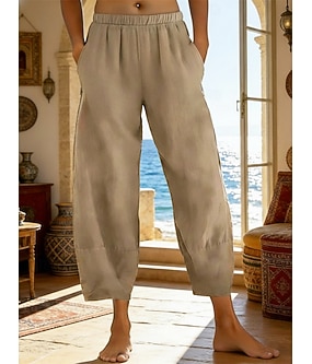 Dam Sommarbyxor 100% Bomuld Byxor Ledigt vardag Ankellång Slät Sidfickor Elastiskt midjeband Mateial som andas Bekväm Oelastisk Helgen Svart Mörk Marin Kaki Grå Vår & sommar Normal