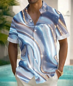 Herr Geometrisk Marmor Abstrakt konst Skjorta Sommarskjorta Knapp upp skjorta Kortärmad Mode Casual Semester Helgdag Streetwear Sommar Nedvikt 3D-utskrift Främre en ficka Linne som skjorta Blå