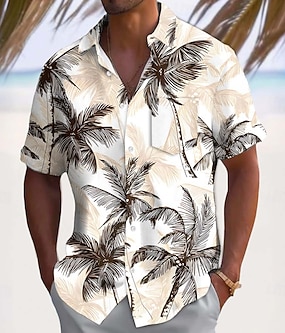 Herr Kokosnötsträd Natur och landskap Tropiska växter Hawaii skjorta Knapp upp skjorta Aloha skjorta Kortärmad Hawaiisk Semester Sommar Vår Nedvikt 3D-utskrift krage skjortor Främre en ficka Bl