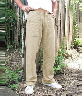 Herr Linne Byxor Långbyxor Sommarbyxor Gazebyxor Snörning Elastisk midja Rakt ben Slät Komfort Andningsfunktion Fullängd Ledigt Dagligen Utomhus Semester Mode Vit Himmelsblå Oelastisk