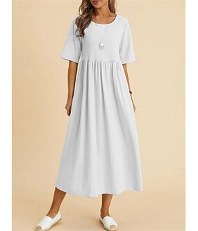 midiklänning för kvinnor ledig kortärmad rund hals enfärgad empire midja sommarkläder bekväma utsvängda kjol modekläder kläder