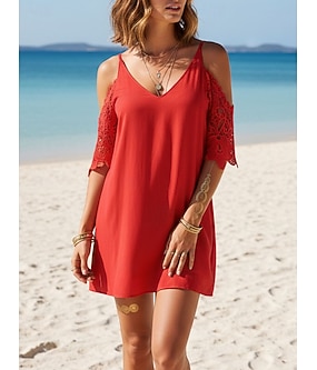 Dam Mini klänning Vit klänning Strandklänning Svart klänning Cover Up Elegant Mode Klassisk Dagligen Utomhus Strand Normal Slät Långärmad V-hals Svart Vit Rosenröd Sommar Vår