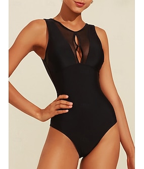 Dam Badkläder En bit Baddräkt Hål Enfärgad / vanlig färg Svart Runda Baddräkter Strandstil