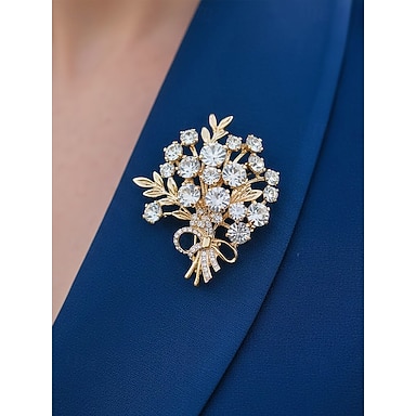 Dambrosch i legering med diamantimitation – elegant blommönster i guld och silver, perfekt för bröllop och speciella tillfällen