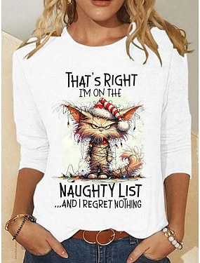 Jul Dam T-shirt Mönster Grafisk Djur Katt Mode Ledigt Långärmad Rund hals Vanliga toppar Dagligen Helgen Blå Rubinrött Grön Röd och vit Sommar Vår Höst Vinter
