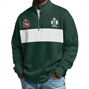 Herr Färgblock Horisontella Strips Pikétröjor med dragkedja Långärmad Polotröjor farfars krage Ledigt Skola Fritids- Helgdag Dagliga kläder 3D-utskrift Quarter Zip Polo Vår Höst Marinblå Grön