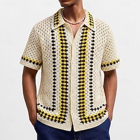 Herr Polo Pikétröjor Ledigt Gata Kavajslag Kortärmad Vintage Grundläggande Geometrisk Lättvikt Knappar Sommar Vår Normal Blå Polo