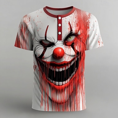 Herr Kuslig clown Joker Mänskligt ansikte T-shirt Henleytröja Kortärmad Designer Grafisk Retro / vintage Ledigt Dagligen Gata Sommar Vår Alla årstider 1# 2# 3# Henley Henley T-shirt