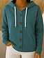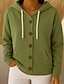 Dam Huvtröjor Slät Elegant Varm Mode Långärmad Huva Vanliga toppar Hem Arbete Vardag Lappverk Knappar Svart Blå Kaki Höst Vinter