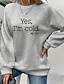 Dam Huvtröjor Bokstav Ledigt Långärmad Rund hals Vanliga toppar Arbete Vardag Ledigt Mönster Vit Orange Grön Grå Höst Vinter
