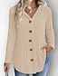 Dam Blus Ensfärgat Elegant Dagligen Ledigt Långärmad V-hals Vanliga toppar Arbete Dagligen Helgdag Knappar Vit Rodnande Rosa Grön Påfågel-blå Grå Vår Höst Vinter
