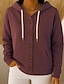 Dam Zip Up hoodies Huvtröjor Slät Elegant Varm Mode Långärmad Huva Vanliga toppar Hem Arbete Gata Snörning Dragkedja Svart Vit Vin Kaffe Sommar Vår