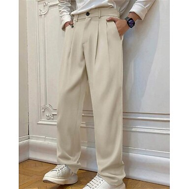 Herr Linne Byxor Långbyxor Sommarbyxor Plisserade byxor Klänning Byxor Framficka Rakt ben Slät Komfort Andningsfunktion Ledigt Dagligen Helgdag Mode Grundläggande Svart Vit