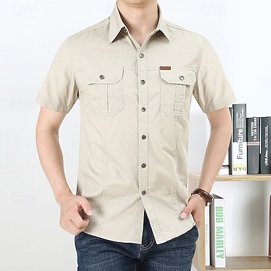 Herr Ko -tryck Arbetsskjortor Västerländsk skjorta Cargo skjorta Kortärmad Ledigt Taktisk Sport & Utomhus Utekväll Sommar Vår Nedvikt Mönster Armégrön Kaki Mörkblå Beige