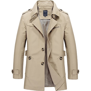 Herr Vinterkappa Vindtät jacka Fältrock Trenchcoat Företag Ledigt Vinter Höst vinter Polyester Vindtät jacka Ytterkläder Kläder Streetwear Solid färg Hakslag