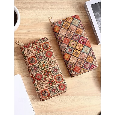 Lång bohemisk plånbok i konstläder för kvinnor, stor kapacitet med flera kortfack och dragkedja i flera mönster för shopping, daglig användning och resor