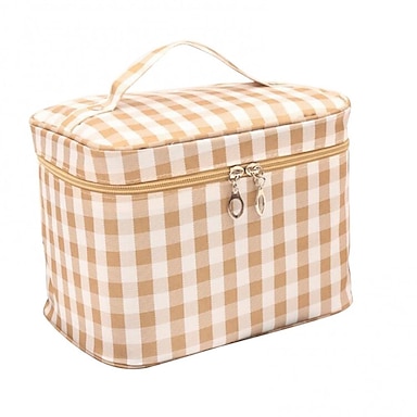 Damvävd sminkväska i polyester, flerfärgad, stor kapacitet med flera fack, perfekt för dagligt bruk, semester och resor
