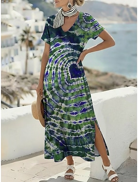 Dam Långklänning Maxiklänning Vardagsklänning A linjeklänning Elegant Stylish Ledigt Semester Dagligen Lös passning Grafisk Kortärmad V-hals Svart Gul Blå Grön Sommar Vår