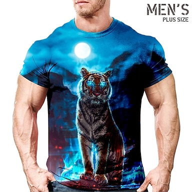 Herr Plusstorlekar T-shirt Stor och lång Grafisk Rund hals Mönster Kortärmad Vår & sommar Vintage Streetwear Bekväm Ledigt Sport Blast