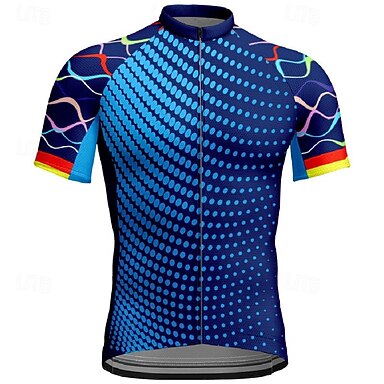Herr Cykeltröja Grafisk Geometrisk Bokstav & Nummer Kortärmad Cykel T-shirt Tröja Överdelar med 3 bakfickor UV-resistent Snabb tork Dragkedja fram Reflexremsa sporter Blå Kläder