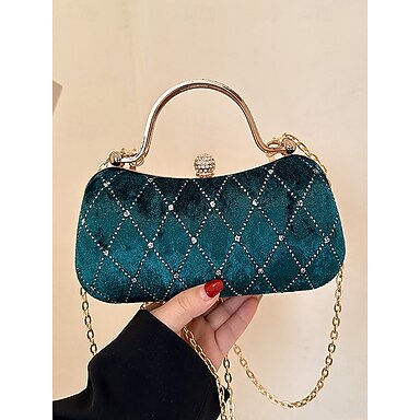 Damväska i sammet med quiltad kvällsväska med diamantdetaljer - elegant axelväska för julfester, högtidssammankomster och speciella tillfällen