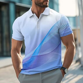 Herr Geometrisk Polo Kortärmad Polotröjor Skjortor med krage Ledigt Gata Fritids- Dagliga kläder 3D-utskrift Knappar Sommar Blå Rodnande Rosa Purpur