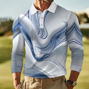 Herr Abstrakt Geometrisk Polo Långärmad Polotröjor Kavajslag Ledigt Utomhus Fritids- Dagliga kläder 3D-utskrift Knappar Vår Höst Vinter Rubinrött Blå Purpur