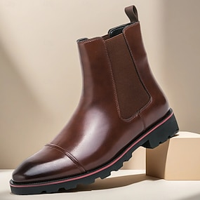Herrbruna chelsea-stövlar i konstläder – klassiska slip-on-stövlar med rund tå och bekväm sula, snygga finskor för arbete, affärsmöten och formella evenemang