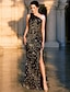 Sjöjungfru trumpet Hovsläp Balklänningar Kvälls klänningar Balklänning Formell klädsel Elegant Ärmlös Illusionshalsband Karnival Formell afroamerikan Paljetter med Paljett