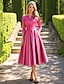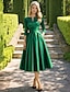 A-linje Telång Cocktailklänningar Festklänningar Elegant minimalist 3/4 ärm Prydd med juveler Bröllopsgäst Festkläder Höstens bröllopsgäst Satäng med Plisserat