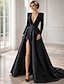 Balklänning Golvlång Balklänningar Kvälls klänningar Balklänning Formell klädsel Glitter och glans Långärmad V-hals Bröllopsgäst Bröllopsfest Ficka Satäng med Paljett Ficka