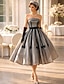 A-linje Ankellång Cocktailklänningar Kvälls klänningar Festklänningar Elegant Vintage Femtiotal Kortärmad Illusionshalsband Halloween Bröllopsgäst Höstens bröllopsgäst Spets Tyll med Plisserat