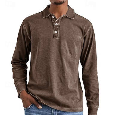 Herr Golftröja Golf pikétröjor Arbete Ledigt Kavajslag Långärmad Grundläggande Modern Slät Knappar Vår Höst Normal Svart Rosa Marinblå Blå Purpur Brun Golftröja