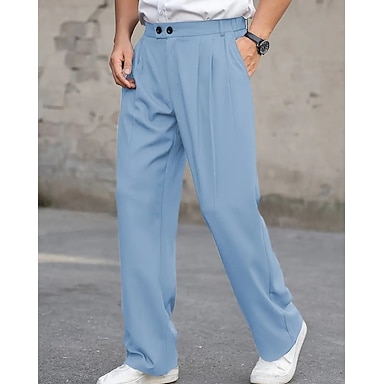 Herr Linne Byxor Långbyxor Kostymbyxor Sommarbyxor Strandbyxor Framficka Rakt ben Slät Komfort Andningsfunktion Fullängd Formell Företag Helgdag Mode Grundläggande Vit Marinblå