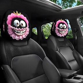 2 st. nackstödsskydd med tecknade, stora ögon och tryck, inredning, universell passform, tvättbara, enkla att installera, lämpliga för långa resor eller bilresor, perfekta, udda bildekorationer