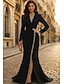 Smokingklänning Slida Formell Satäng Elegant Den lilla svarta 3/4-ärmad veckad Ankellång Delat lår Naggade slag Enkelknäppt