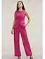 Dam Ärmlös väst Tvådelad Arbete Kontor / Karriär Stretch crepe Elegant Enkel Ärmlös Runda Enkelknäppt